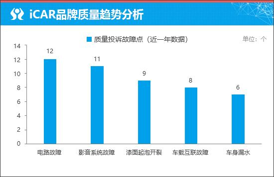 通过筛选iCAR品牌近一年的投诉数据可以发现,故障问题相对较多的是“电路故障”,主要集中在iCAR 03车型。进一步分析得知,由于iCAR V27搭载最新的超级黄金增程系统,与iCAR 03的动力系统并非同款,因此可暂且认为其出现上述问题的几率不大。但具体情况如何,还要待其使用一段时间后才能有定论。