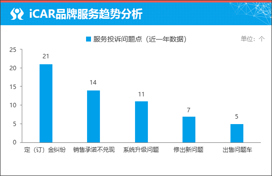 从服务投诉问题点来看,“定(订)金纠纷”成为车主对于iCAR品牌投诉相对较多的服务问题。通过进一步分析可知,该投诉问题主要来自iCAR 03车型。